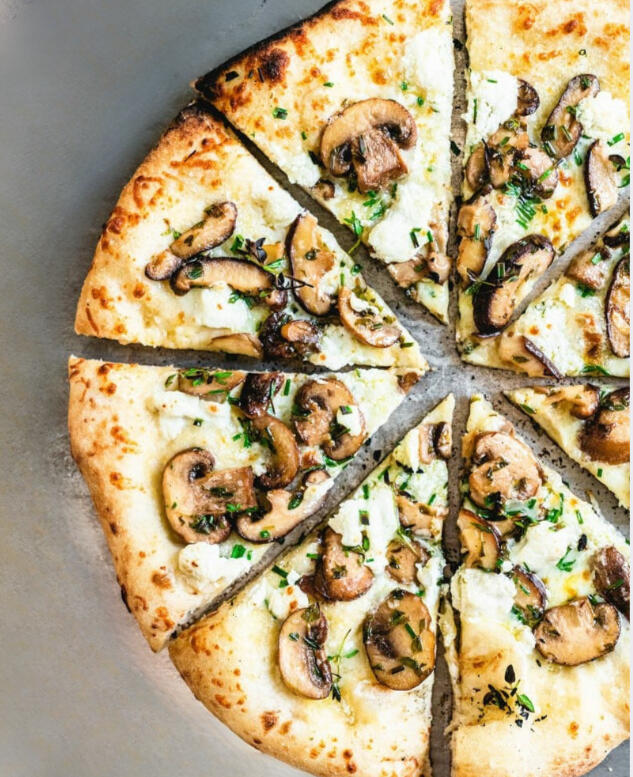 A rich and indulgent pizza that brings together the deep earthiness of roasted Bella mushrooms, the savory bite of Italian sausage, and the aromatic touch of fresh thyme. and melted mozzarella, creating a bold yet balanced flavor experience.
