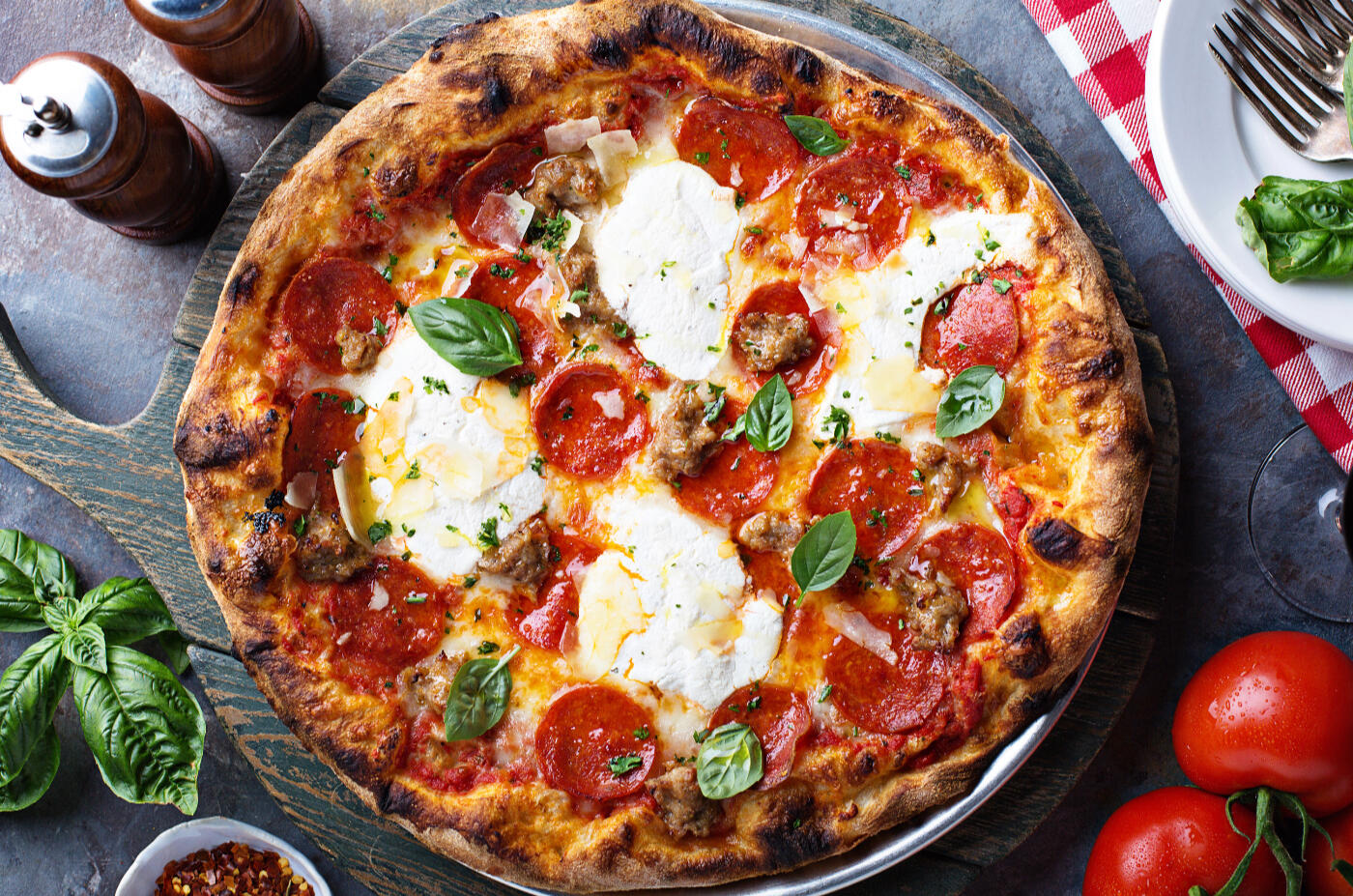 A bold, sweet, and spicy pizza with pepperoni, spicy Italian sausage, fire-roasted jalapeños, and a drizzle of Mike's Hot Honey. Finished with a dusting of Pecorino Romano, and crushed red pepper for a knockout punch.